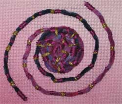 Sharon will probably show it as a TAST stitch later but the coral stitch has a "faux" couching look -- it is a knot in the middle of a stitched line.
